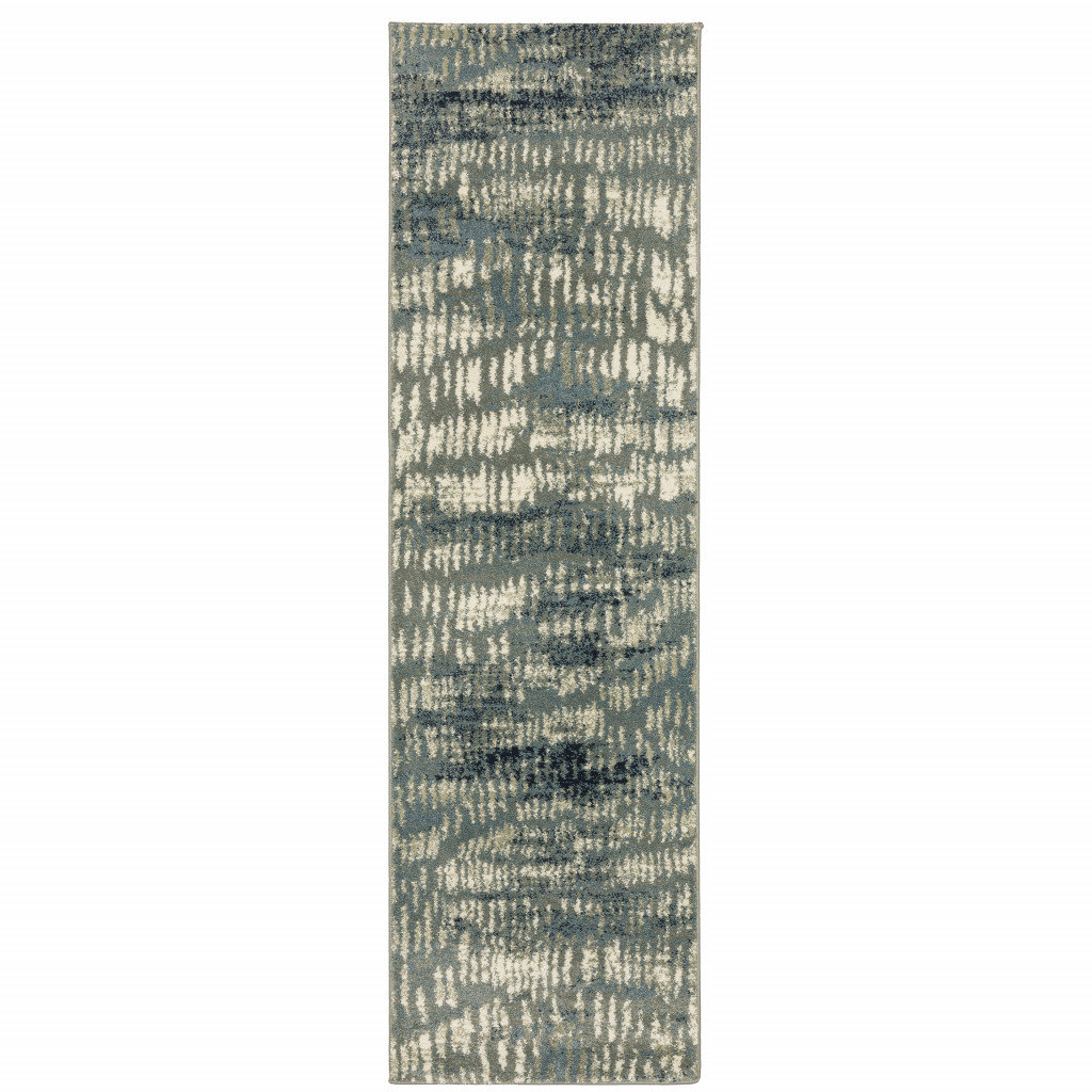 Add some artistry to your room with this 2' x 8' grey beige blue and light blue abstract power loom stain resistant runner rug. This runner shaped rug features a abstract design in grey beige blue and light blue to give it visual interest. A classic shape marries with good looking design for your space Ideal for spaces with kids and pets, this rug is stain resistant to help repel stains and spilled liquids. Place this area rug against a hardwood or tile floor and it will enliven your living space with style and sophistication. 0.79" H x 26.38" W x 90.55" D