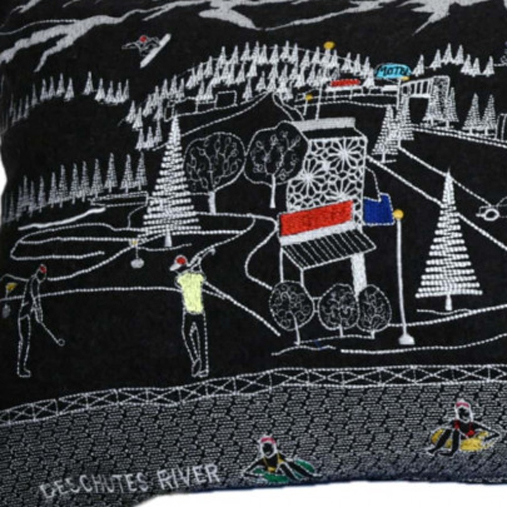 Showcase this famous city, with our Black Color Bend Nighttime Skyline King Size Lumbar Decorative Pillow. The Nighttime view of Bend from the mighty Deschutes River that runs through it, is picture perfect. The gorgeous art features many famous landmarks and references for this destination city, rendering a modern whimsical way to bring this iconic cityscape to life. Made of a wool/nylon blend, this high quality stitched decorative pillow features white on black embroidered artwork mixed with pops of color that highlight important and recognizable icons from this popular Oregon city. This pillow makes a great gift, decorative accent and conversation piece. 14-inch H x 46-inch W x 4-inch D