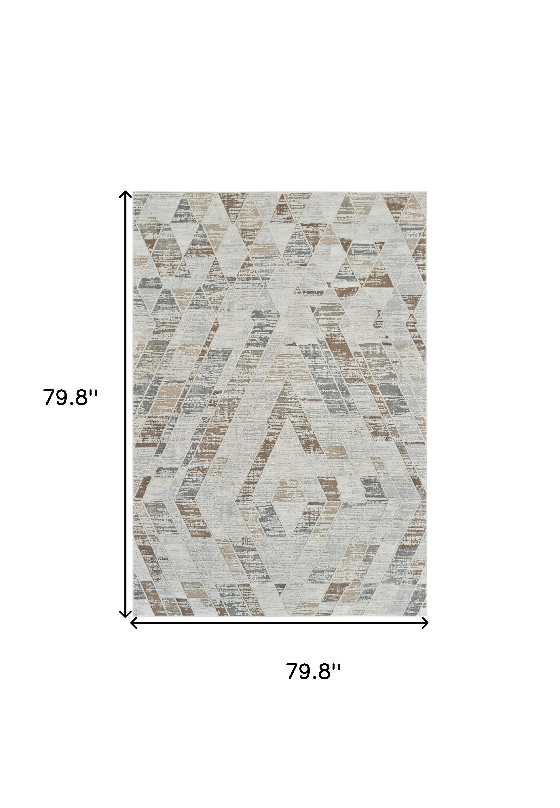 Set an inviting tone in your space with this 7-foot x 10-foot beige and brown abstract distressed area rug. This rectangle shaped rug features a abstract design in beige and brown to give it visual interest. A classic shape marries with good looking design for your space ideal for spaces with kids and pets, this rug is stain resistant to help repel stains and spilled liquids. 79.8-inch H x 79.8-inch W x 0.43-inch D