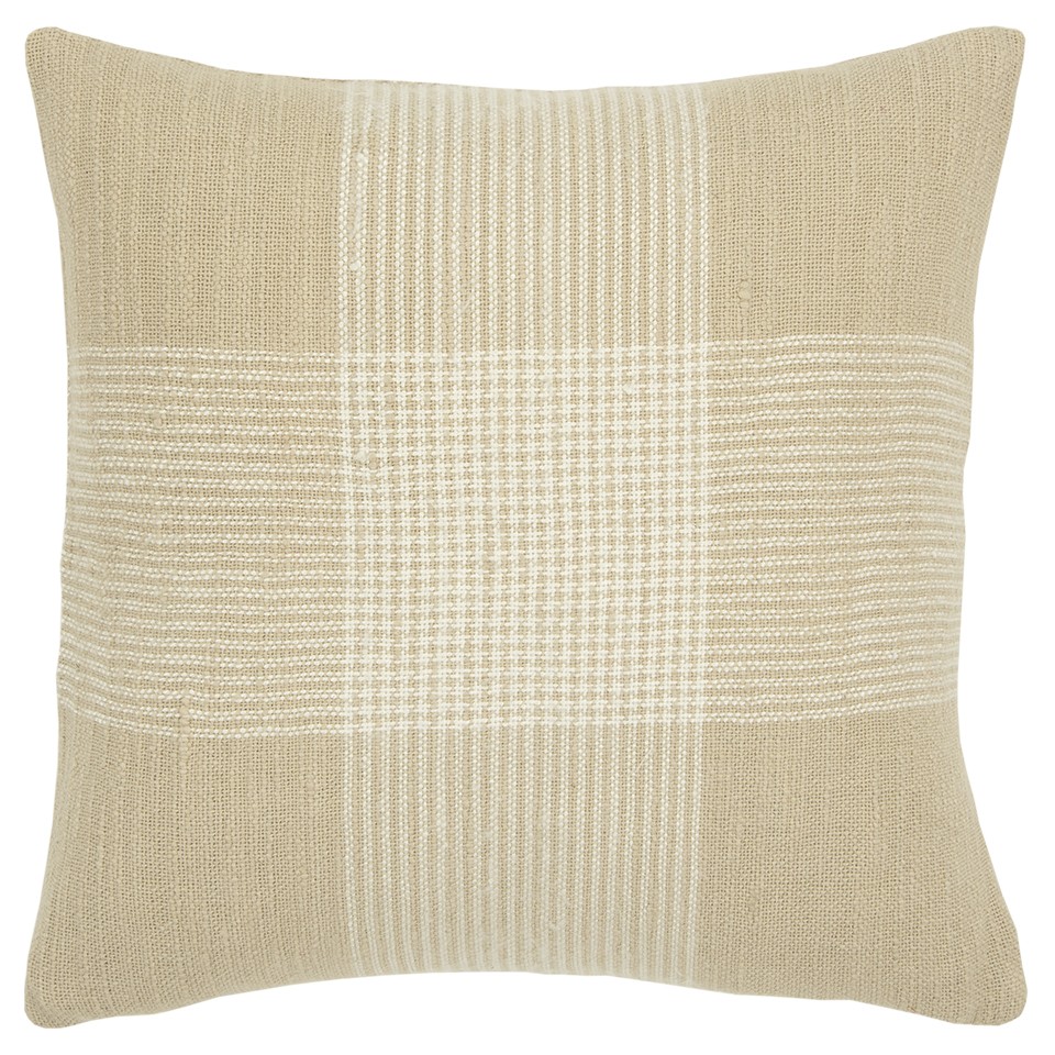 This eye-soothing Beige White Plaid Pattern Throw Pillow is the ideal accessory to add a casual vibe to any modern or contemporary décor. The woven pillow is versatile with a centered plaid forming reversible houndstooth pattern in white which is beautifully complemented with the soft beige background. Constructed with cotton slub fabric, the pillow is soft yet sturdy to last for a long time. The back of the pillow features the same cotton fabric with a hidden zipper closure for convenience. The pillow comes with a polyfill insert that guarantees comfort and coziness to ensure that you have a good resting experience. Symmetrical décor elements are always inviting in a room full of clean-lined décor and this decorative throw pillow is the perfect casual piece to achieve a stylish modern look in your interior. 20" x 20" x 6.25"